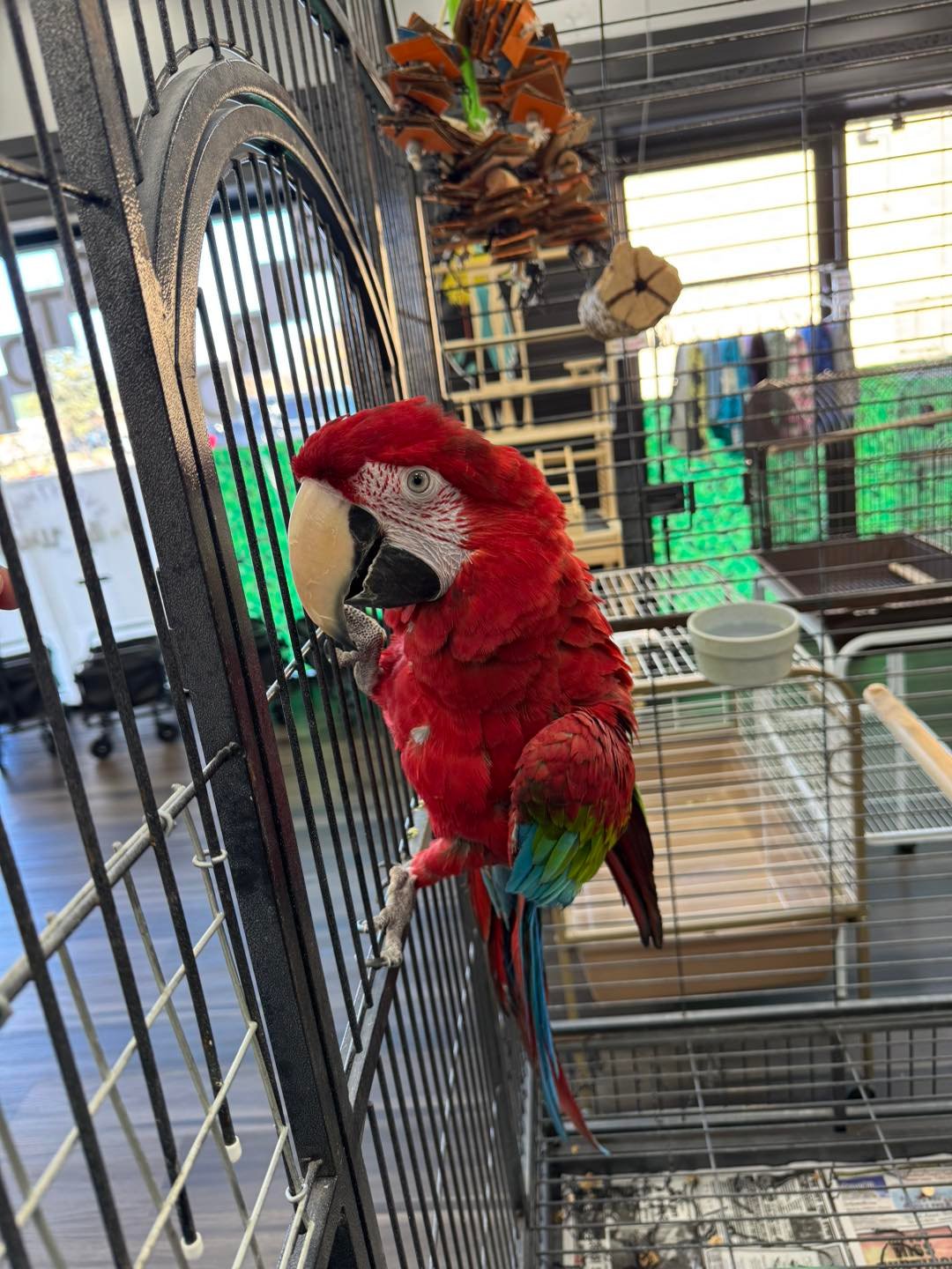 Macaws need a large, durable cage with room to stretch their wings, climb, and exercise. Out-of-cage time is essential daily.